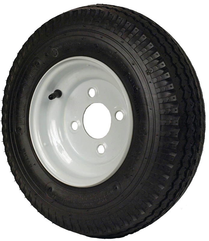For utility, RV and boat trailers. 480/400-8 LRB bias ply tire. 590 lb capacity at 60 psi. Meets DOT requirements.