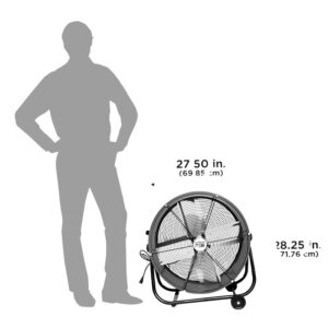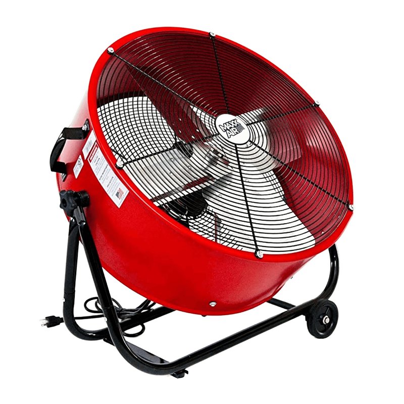 The MaxxAir tilt fan is ideal for all of your small and medium sized ventilation needs. It can be used in small workshops, on patios, in garages and in warehouse stations. This fan is also useful for drying carpet when tilted 180 deg. The 24 in tilt fan has non-skid positioning legs, roll-around wheels for mobility and a rugged 22 ga steel housing for durability, as well as OSHA compliant, powder-coated grilles.Item Specifications