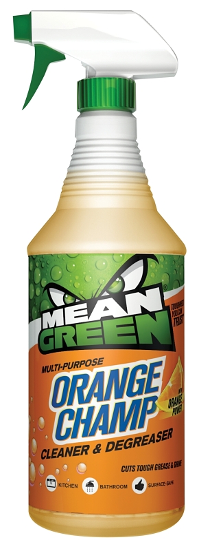Mean Green orange champ is a multi-purpose, multi-surface cleaner and degreaser with orange power. Orange champ cuts through tough grease and grime leaving a fresh citrus aroma, a scent of clean. It gives a powerful clean that is safe on most washable surfaces throughout your family's home.