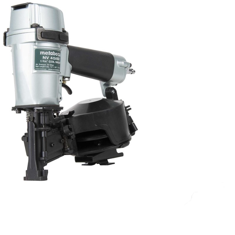 Metabo HPT introduces the new Pro Bundle 1-3/4 in coil roofing nailer with BONUS impact driver kit. This limited time offer includes everything a pro needs to get the job done. This bundle includes our Pro preferred coil roofing nailer, 18 V cordless triple hammer bolt impact driver (WH18DCQ4), 18 V/36 V MultiVolt 5.0 Ah water & dust resistant battery (380083M) and charger. The coil roofing nailer (NV45AB2), is extremely lightweight, (only 5.7 Lb.) making it the essential tool for the fast-pace working environment. It features rapid driving and unprecedented quick response with unique cylinder valve firing mechanism allowing you to fire up to 3 nails per second. The coil roofing nailer will fire all standard roofing nails ranging in size from 7/8 to 1-3/4 in. Its depth of drive adjustment will allow the user to drive the nail to the desired depth at operating pressure ranging from 70 to 120 psi.Item Specifications