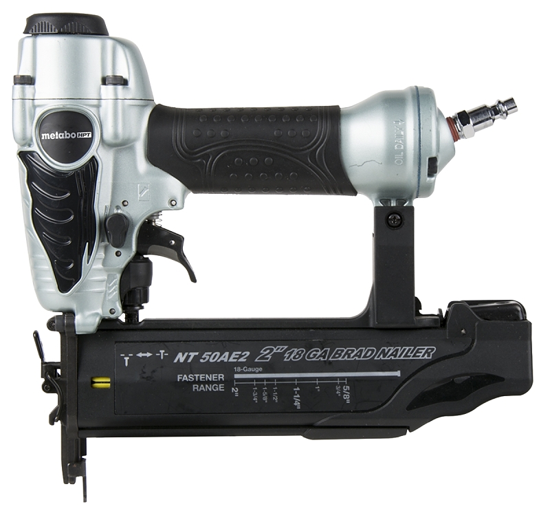 Home > Power Tools and Acc > Power Nail Guns and Staplers > Brad and Finish Guns Pneumatic > Brad Nail Guns Straight > Metabo HPT NT50AE2 Pneumatic Nailer, 100 Magazine, 18 ga x 5/8 to 2 in L Fastener, 0.025 scfm Air