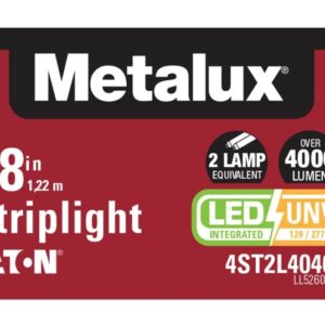 The Metalux ST commercial series is a full width and DLC listed LED strip light. It is designed to retrofit and replace fluorescent strip lights or for new construction. The ST comes standard with continuous row mount aligner bracket, toolless channel cover, 3500 K, 4000 K or 5000 K CCT; universal voltage cold start driver and 5-years warranty. These construction features make the ST a combination of quality, performance and value that helps make ordering, installing and saving energy the top focus of any stock or project business.Item Specifications