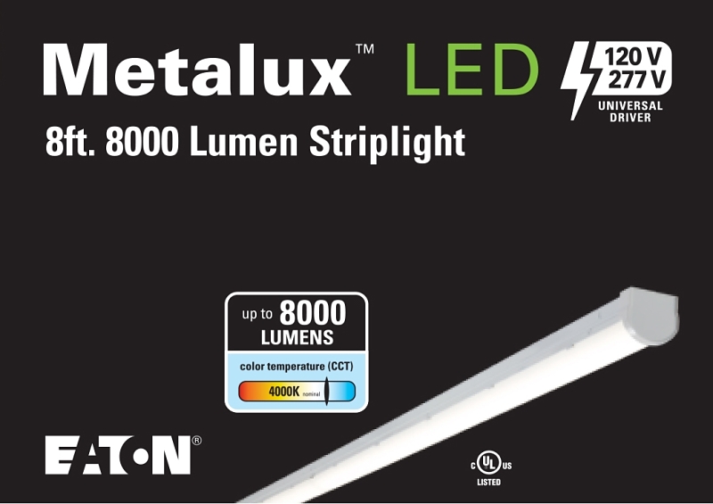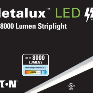Metalux SL Strip Light, 277 V, 0.62/0.27 A, Lamp Wattage: 71 W, Lamp Type: LED, Average Life: 50,000 hr, Color Rendering Index (CRI): 80, Color Temperature: 4000 K, Lumens: 8176 Lumens, Steel, White, Dimensions: 8 ft L, Flush MountingItem Specifications