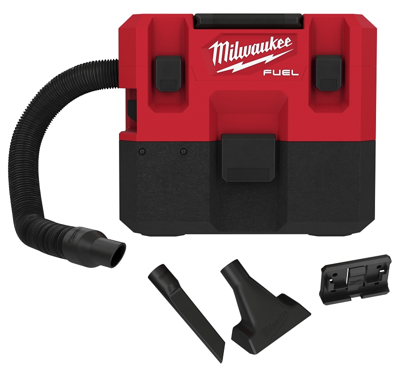 Our M12 FUEL⢠1.6 gal wet/dry vacuum is the first cordless 12 V wet/dry vacuum of its kind. It delivers you up to 40% more suction than 18 V competitors, is the most compact and is up to 2X quieter compared to other common wet/dry Shop-Vacuums. The POWERSTATE⢠brushless motor delivers up to 45 cfm and 42 in of suction. It's compact footprint stores neatly in a van or cart with a stackable design and organized on-board storage conveniently keeps the attachments inside of the unit. It also comes with a wall mount hanging plate, giving you increased storage options. With 14 min of runtime on high and 26 min on the low setting, this compact vacuum is ideal for spot and service focused wet/dry quick clean-up needs. This Milwaukee® cordless wet/dry vacuum comes with a flexible hose, crevice tool, utility nozzle, wall mount and a certified HEPA filter.Item Specifications