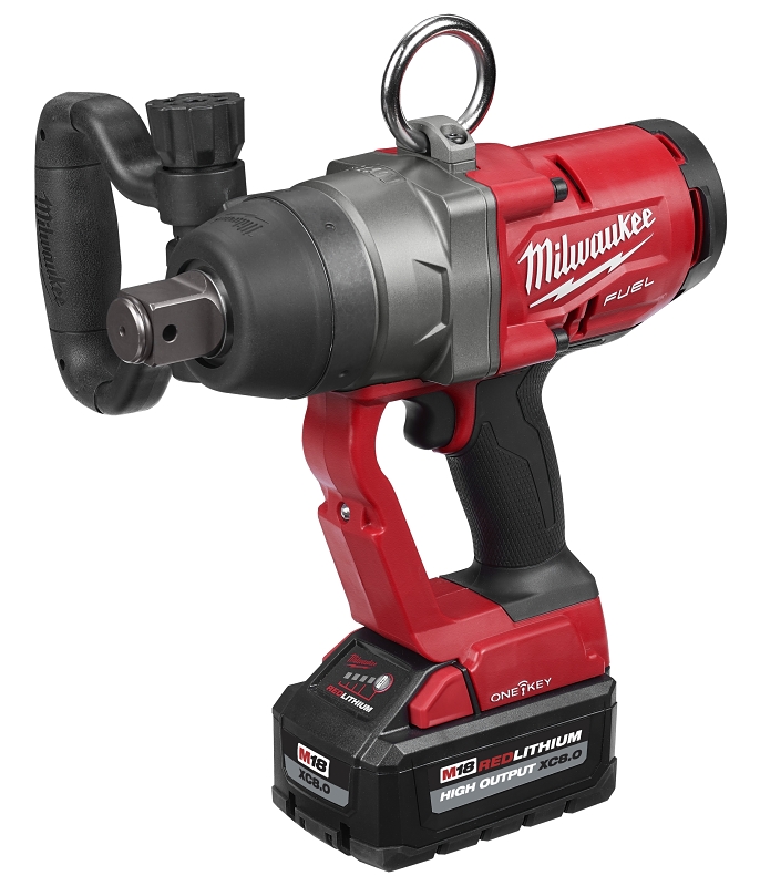 Our M18 FUEL⢠1 in high-torque impact wrench with ONE-KEY⢠is the world's first cordless 1 in high-torque impact wrench. The POWERSTATE⢠brushless motor delivers up to 1800 ft-lb of nut-busting torque and 1500 ft-lb of fastening torque, making this the most powerful cordless impact wrench and enabling you to complete the most demanding applications. At only 12.9 lb with battery, the tool is up to 7 lb lighter than corded units, providing you with less fatigue while making overhead applications easier to complete on the job site. The battery-powered impact wrench provides you with cordless convenience and eliminates your need for compressors, generators, cords and hoses. This reduces your cost of ownership by lowering energy costs and eliminating routine maintenance on compressors and generators. With no cord or hoses, you have greater portability and the ability to complete applications you were not able to do with a corded or pneumatic unit. The REDLINK PLUS⢠intelligence ensures you achieve maximum performance and protects your high-torque impact wrench against overloads, over-heating and over-discharge. M18⢠REDLITHIUM⢠HIGH OUTPUT⢠XC8.0 battery packs are compatible with all M18⢠tools, providing you with more work per charge and more work over the life of the pack. The four Mode DRIVE CONTROL⢠provides you with greater control over the output speed and power of the powerful high-torque impact wrench. The ONE-KEY⢠capabilities provide you with the ability to customize, track and manage the impact wrench. ONE-KEY⢠technology also gives you the ability to set a repeatable torque output for maximum control. In addition to the impact wrench, this kit includes two M18⢠HIGH OUTPUT⢠XC8.0 batteries a M18⢠and M12⢠rapid charger, a tool free adjustable handle, lanyard loop and a contractor bag.Item Specifications
