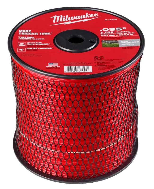 Home > Lawn and Garden > Lawn Power Equipment > Trimmer Accessories > Weed Trimmer Line > Milwaukee 49-16-2783 Trimmer Line Spool, 0.09 in Dia, 750 ft L, Polymer, Red