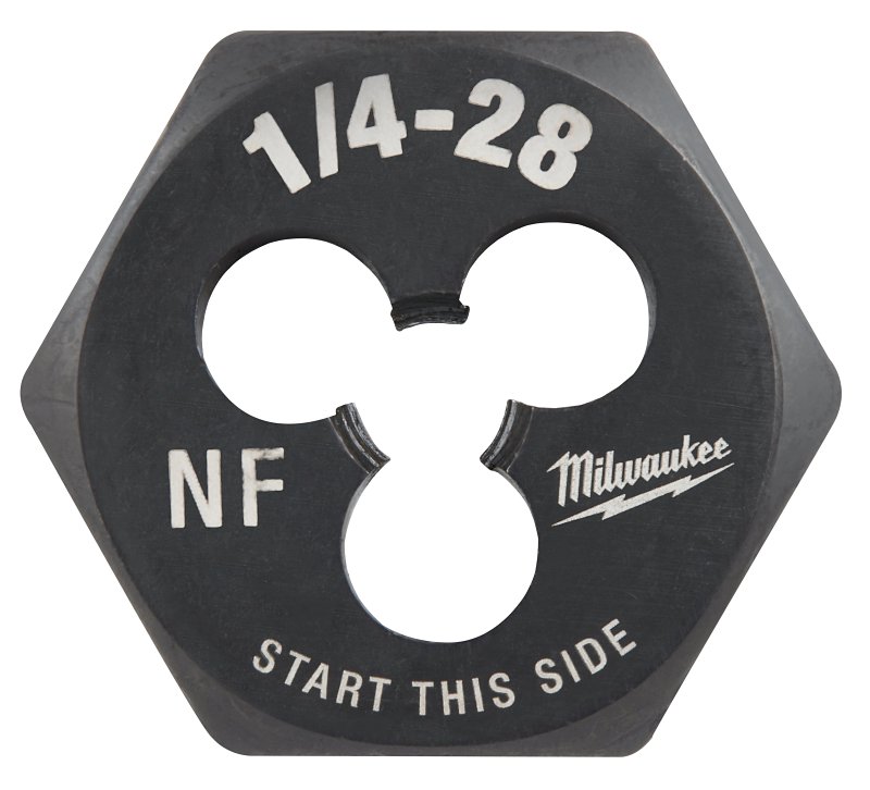Our Milwaukee® 1 in Hex Threading Dies are precision-machined for creating or repairing clean, accurate (external) threads. The hex dies feature long-lasting laser-etched sizing for the clearest markings and include a protective black oxide coating for corrosion resistance. The 1 in Hex shape is compatible with the Milwaukee® Hex-LOK⢠two-in-one Threading Handle, as well as all standard 1 in hex die stocks. Engineered for durability, our Milwaukee® 1 in hex dies are designed for cutting threads in the most common metal applications including brass, aluminum and mild steel.Item Specifications