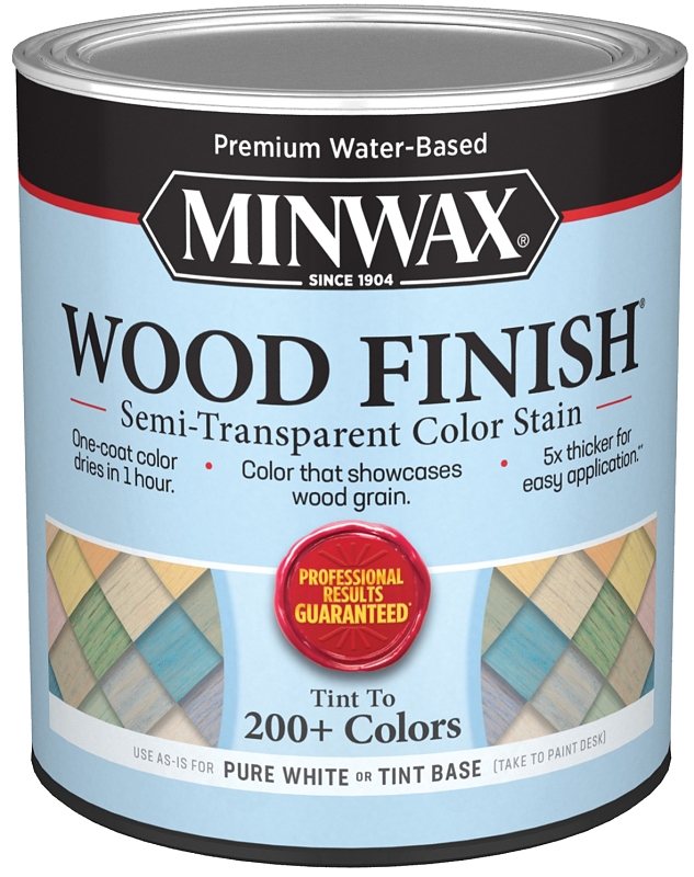 Minwax® wood finish semi-transparent color stain is a penetrating, water-based stain that opens up a world of possibilities with 200+ tintable color options in just one woodgrain-enhancing coat.Item Specifications