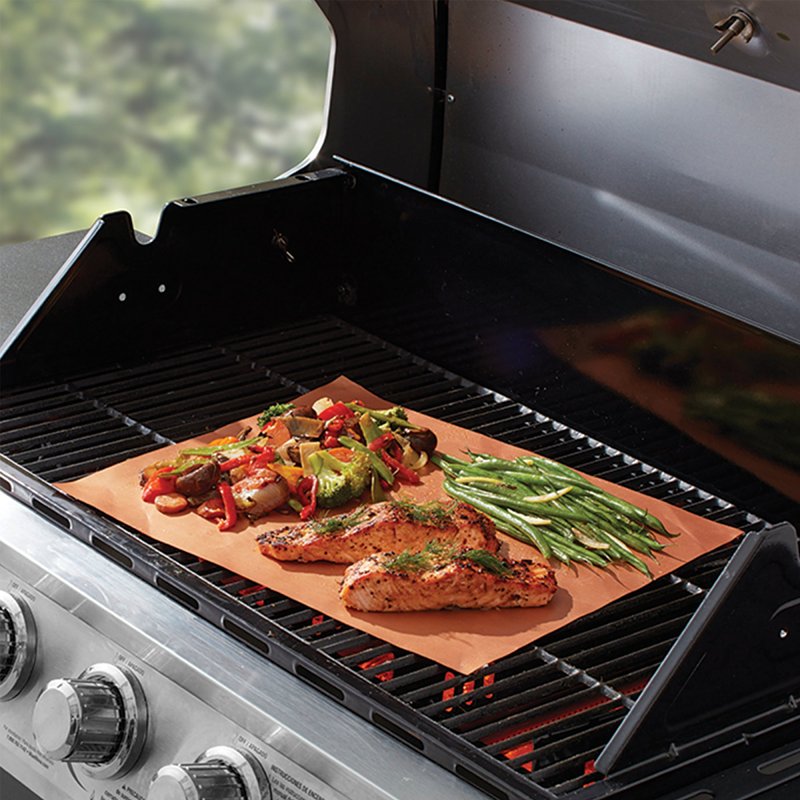 Home > Outdoor Living and Patio > Outdoor Cooking > Grill Accessories > Grill Cookware > Mr. BAR-B-Q 06198Y Reusable Grill Mat, 15-3/4 in L, 13 in W, Copper