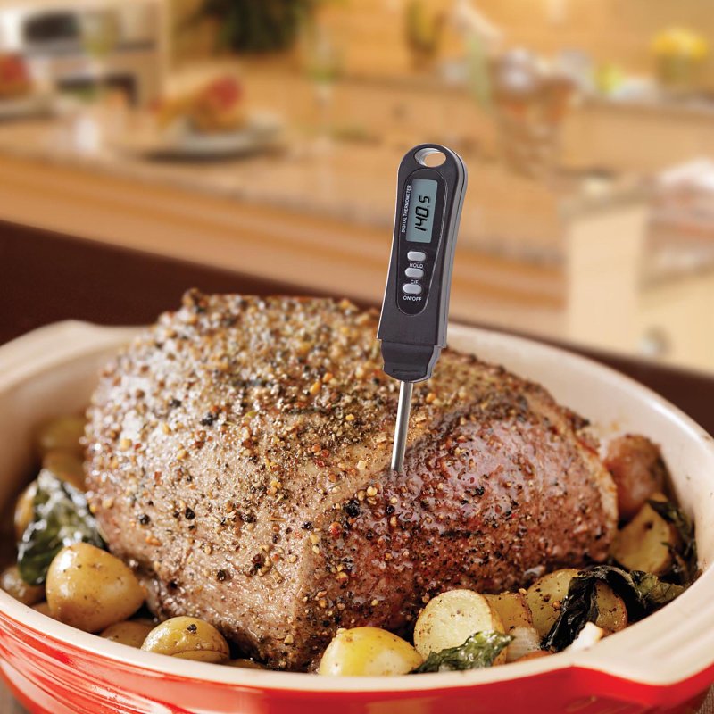 Mr. BAR-B-Q Small Digital Meat Thermometer, LCD Display, Power Source: Battery, Power Supply: LR44, Black