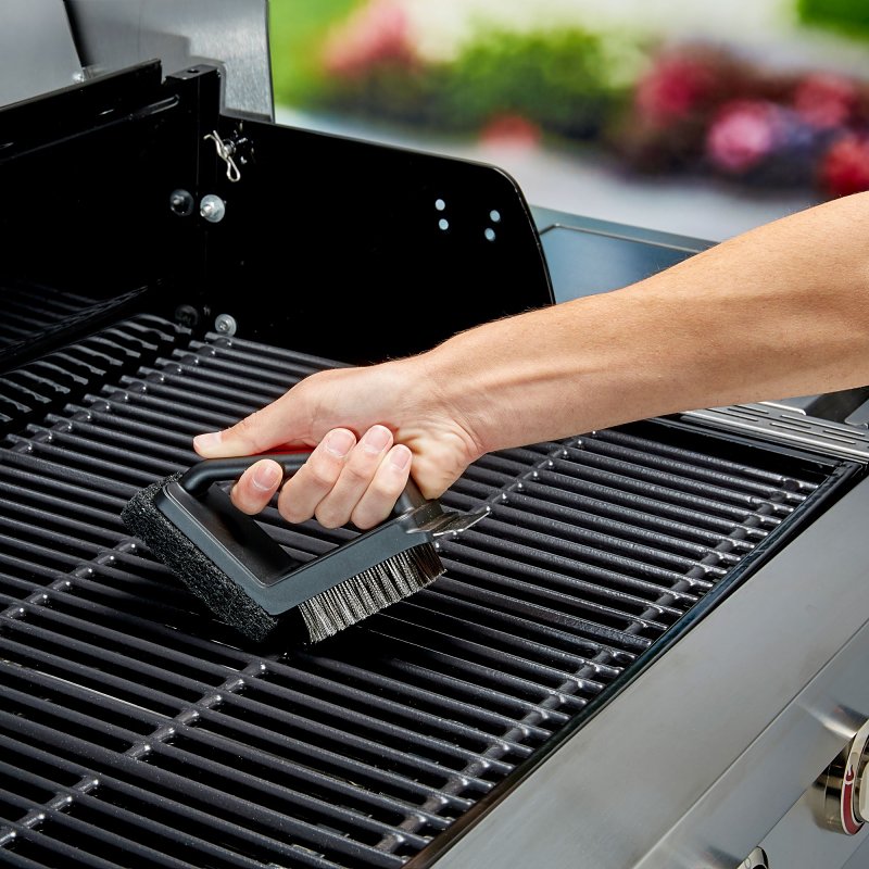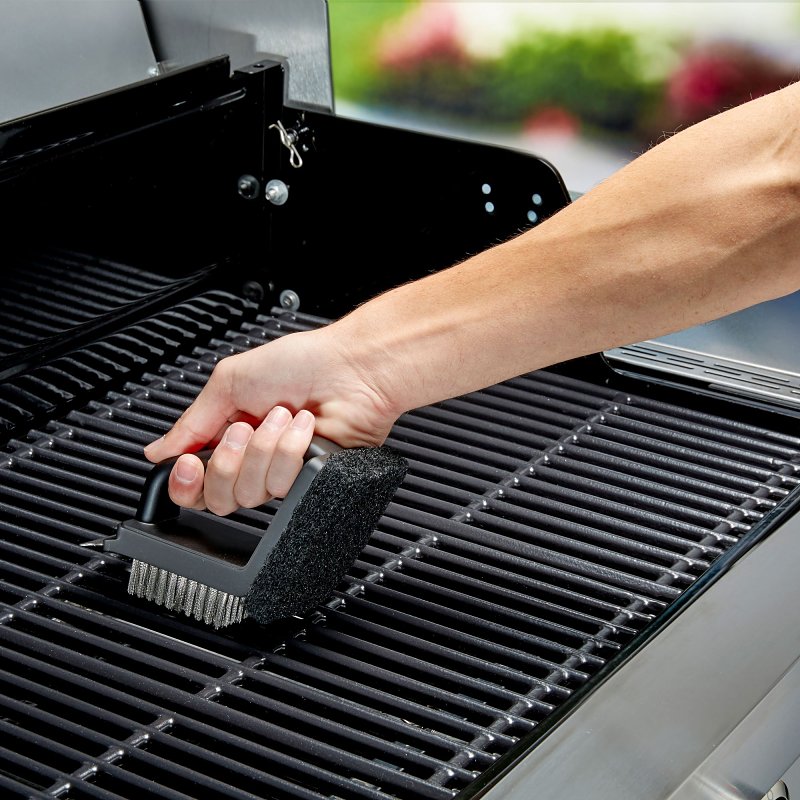Home > Outdoor Living and Patio > Outdoor Cooking > Grill Accessories > Grill Brushes and Scrapers > Mr. BAR-B-Q 60319Y Dual Head Grill Brush Scrub Pad and Scraper, Stainless Steel Bristle, Thermoplastic Rubber Handle