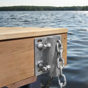 The special shape of this heavy-duty dock hardware part makes it versatile for both stationary or floating wood dock. For posts up to 2 in OD or chain up to 5/16 in.