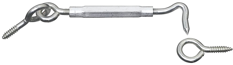 Designed for heavy warehouse, grain bin, machine shed doors and more. After a door is closed and hooked, it can be drawn tightly shut by rotating turnbuckle. Hex-shaped body allows for ease of adjustment by hand or with a wrench. Prevents door rattling. Hook and eye are made of steel.Item Specifications