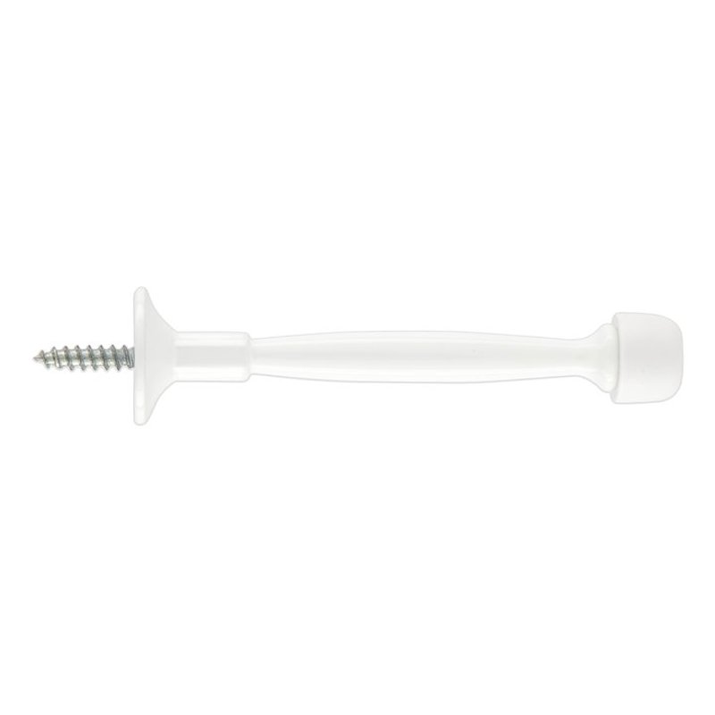 National Hardware 236 Rigid Door Stop, Projection Size: 4 in, Zinc, White, Surface Mounting, Tip Material: PVC, Includes: Mounting Hardware