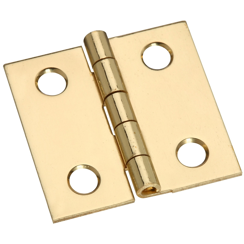National Hardware Decorative Broad Hinge, 2 lb Weight, Door Leaf Height: 1 in, Door Leaf Thickness: 0.02 in, Frame Leaf Height: 1 in, Frame Leaf Thickness: 0.02 in, Pin Diameter: 0.08 in, Surface Mounting, Number of Mounting Holes: 4, Mounting Hole Diameter: 0.14 in, Brass, Solid Brass, Dimensions: 1 in L x 1 in W, Includes: FastenersItem Specifications