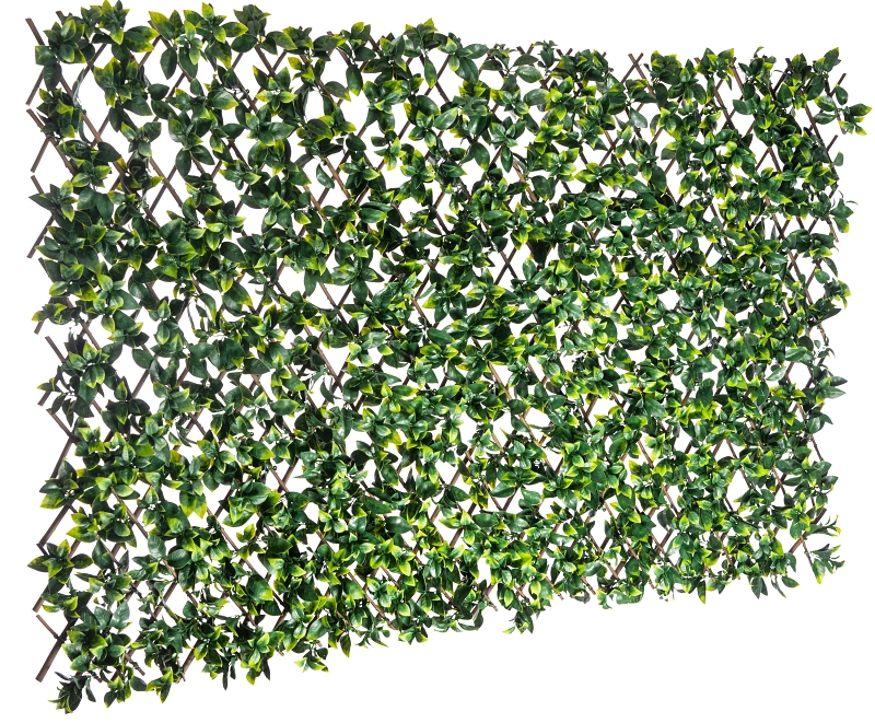 The Nature Decor expandable trellis will be the ideal addition to add style and lifelike vegetation to your outdoor space. Made from high-quality materials and offering optimal privacy with UV protected leaves, you can enjoy the product for years without having to replace it. A versatile solution to redesign and brighten up any space, whether it's a patio, a deck or a balcony. The realistic luxurious artificial foliage requires no maintenance. Easy-to-install and made of sturdy but lightweight materials for outdoor use. Simply secure to a support and extend the trellis to the desired width and height. Standard size optimal extension 36 x 72 in and maximum extension 18 x 90 in (16 in x 48 in when folded). The expandable trellis is a cost-effective way to bring privacy and beauty to your project regardless of its size.Item Specifications