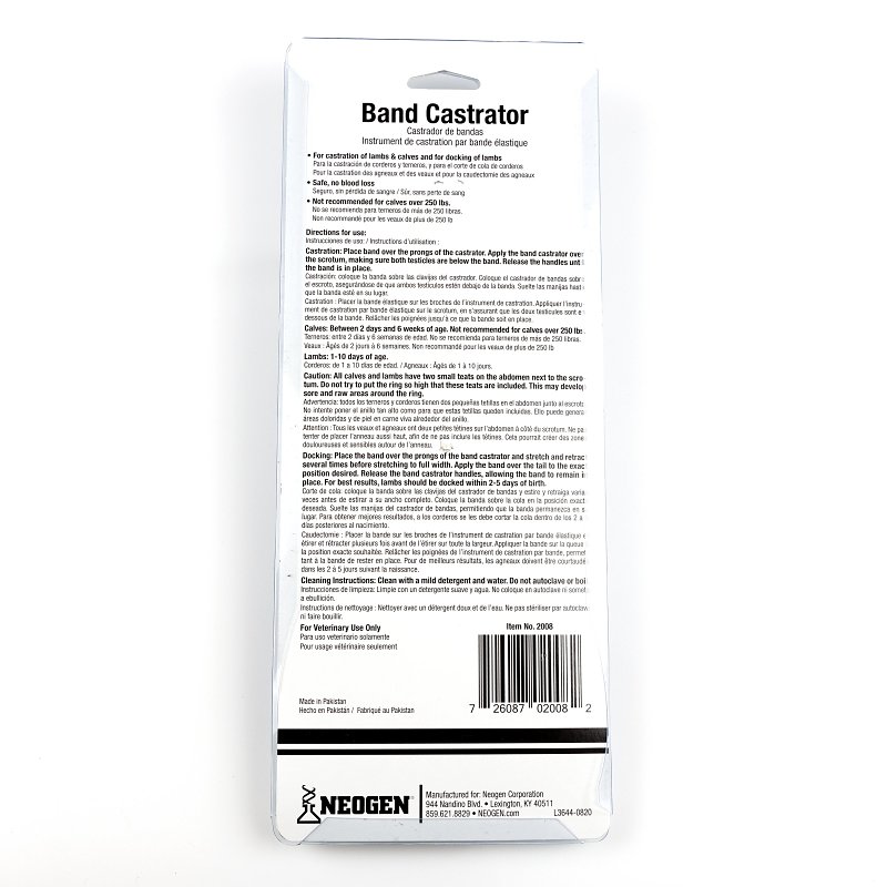 Neogen 2008 Band Castrating Plier, Economy, 1-3/4 in Max Opening Size, Plastic Handle