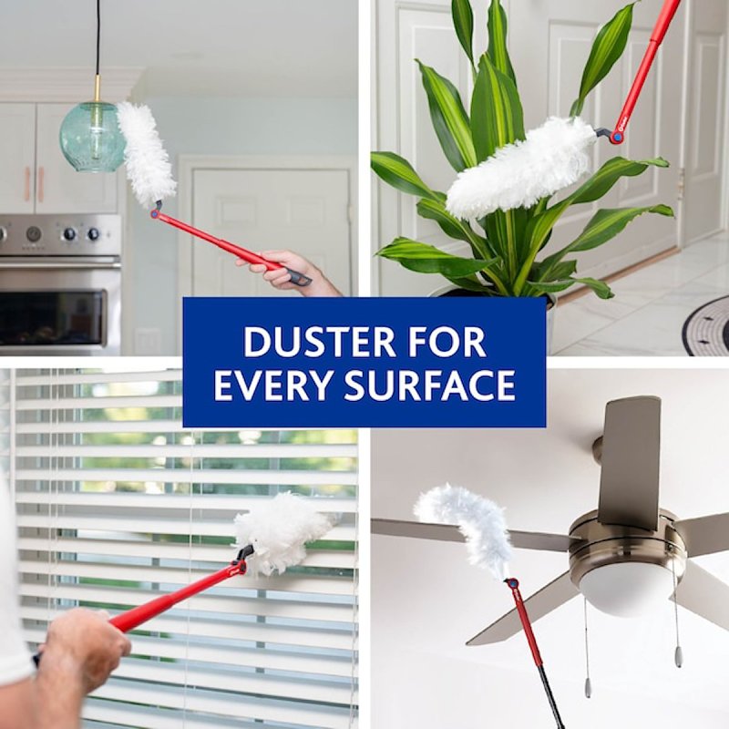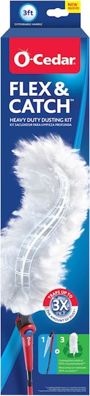 Hidden dust is no match for the O-Cedar Flex & Catchâ¢, the most flexible duster yet. Winner of a 2024 HGTV's Editor's clean home awards, its patented, flexible head effortlessly contours around objects, trapping hidden dirt. The super soft, fluffy fibers trap 3X more dust than a traditional feather duster, plus the extra large refill means you can capture more dust with each swipe. The 3 ft extendable handle makes cleaning those high-up and hard to reach places a breeze. And the cleaning fibers are made from 100% recycled materials, so you can feel better about your carbon footprint.Item Specifications