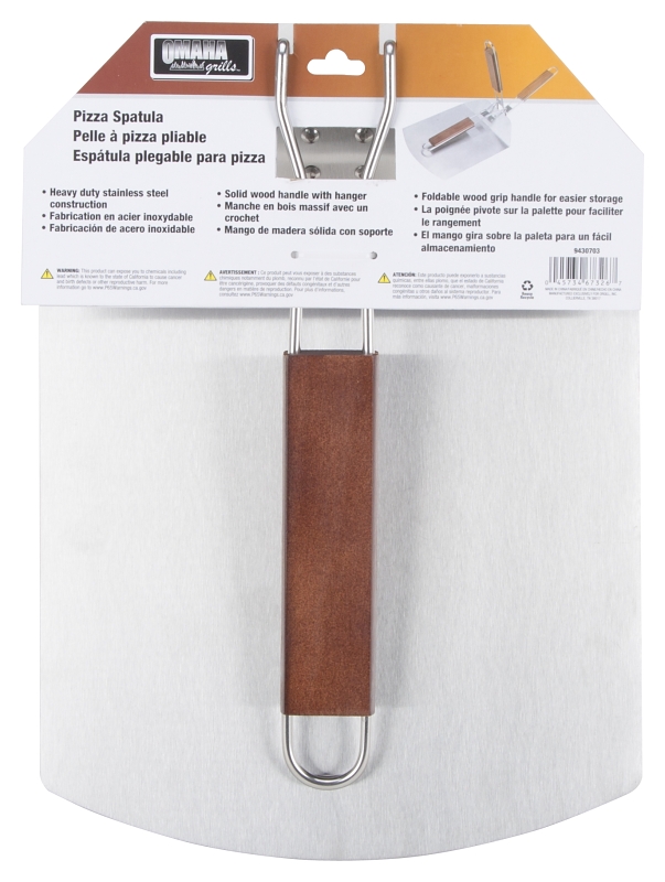 Home > Outdoor Living and Patio > Outdoor Cooking > Grill Accessories > Pizza Cookware > Omaha BBQ-37240B Pizza Spatula, 9-1/2 in W Blade, 1.0 mm, Stainless Steel Blade, Stainless Steel, Wood Handle