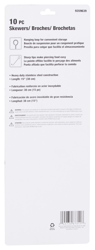 Home > Outdoor Living and Patio > Outdoor Cooking > Grill Accessories > Grilling Skewers > Omaha BBQ-37243B Skewer, 15 in L, Stainless Steel