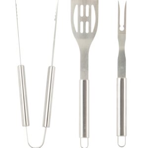 This Omaha 3-piece BBQ grill tool set has all of the basics needed for a backyard cookout. It comes with a spatula, tongs and a fork all constructed from stainless steel.