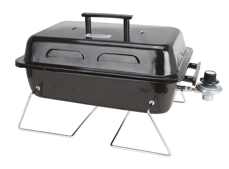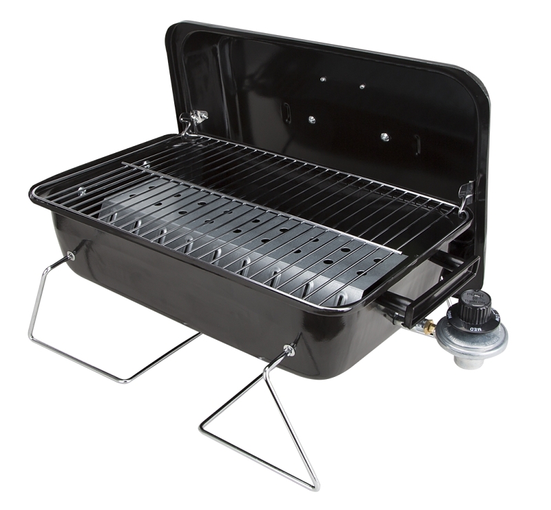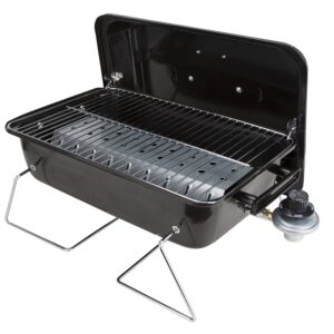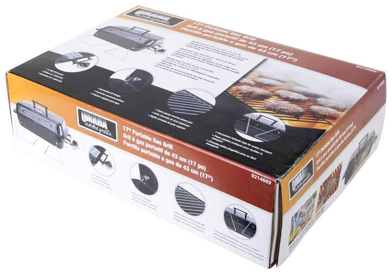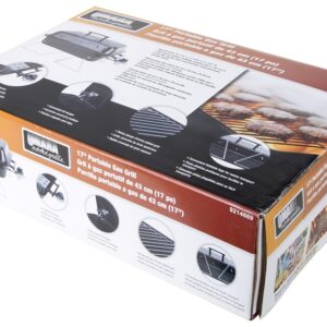 Omaha Portable Gas Grill, Primary Cooking Surface Area: 168 sq-in, Cooking Surface Width: 16 in, Cooking Surface Depth: 10-1/2 in, Number of Grates: 1, Grate Material: Steel, Body Material: Steel, Frame Material: Steel, Black, Firebox Dimensions: 6-5/8 in H x 17 in W x 11-3/4 in D, Dimensions: 11-1/2 in H x 21-1/4 in W x 11-3/4 in DItem Specifications
