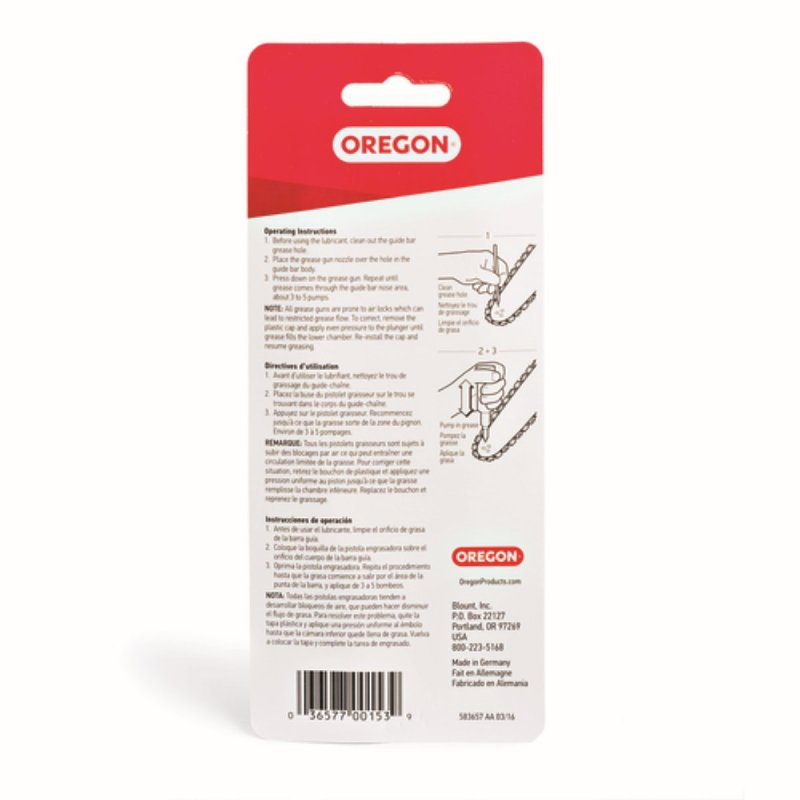 Preloaded see-through gun delivers high-quality grease in measured amounts. Prolongs life of bar and cutting chain, improves cutting performance. The simplest, most effective way to grease chainsaw bar nose bearings.Item Specifications