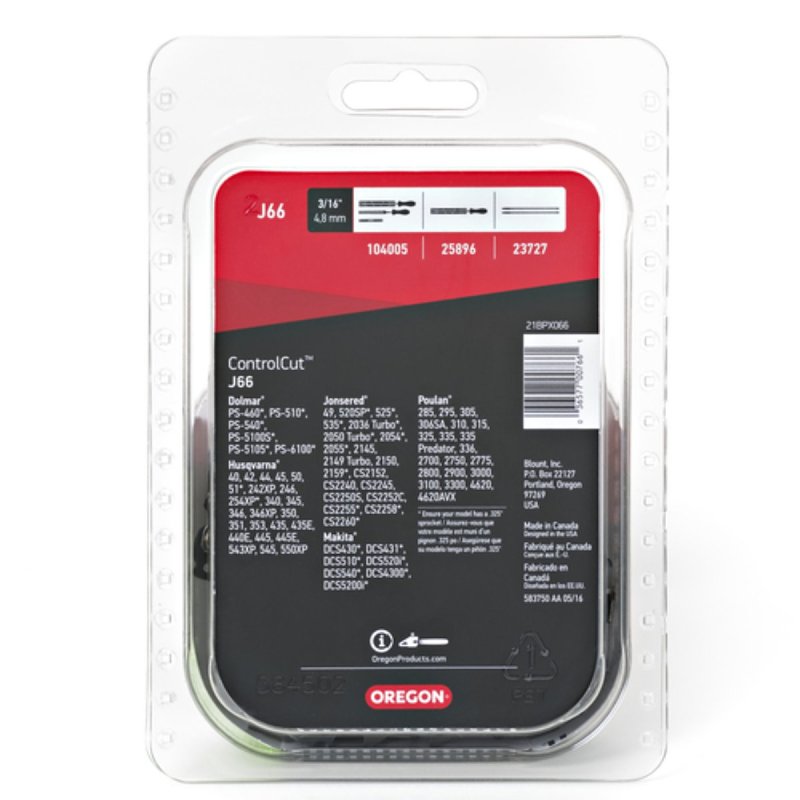 Home > Lawn and Garden > Lawn Power Equipment > Chainsaw Accessories > Chainsaw Chains > Oregon ControlCut J66 Chainsaw Chain, 21BPX Chain, 16 in L Bar, 0.058 in Gauge, 0.325 in TPI/Pitch, 66-Link