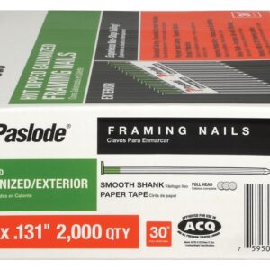 Home > Fasteners > Nails Tacks Brads > Collated Fasteners > Strip Framing Nails 28 36 Deg > Paslode 650388 Framing Nail, 3-1/4 in L, Steel, Galvanized, Full-Round Head, Smooth Shank