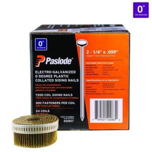 Paslode Siding Nail, Size: 5D, Coil Collation, 0 deg Collation, Round Head, Sharp Point, Smooth Shank, 0.099 in Diameter, 2-1/4 in Length, Steel, Electro-Galvanized, Suitable for: Pneumatic 0 deg Coil Siding Nailer