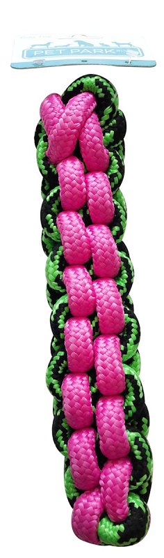 Thick and durable woven Pet Park Blvd™ paracord rope fetch stick can handle rough play. An ideal toy for any size dog breed.