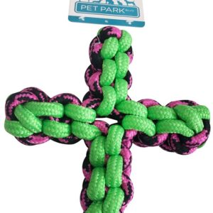 Super-tough, X-shaped woven Pet Park Blvd™ paracord rope twisted quad toy can handle rough play and tough chewing. An ideal toy for any size dog breed.