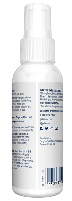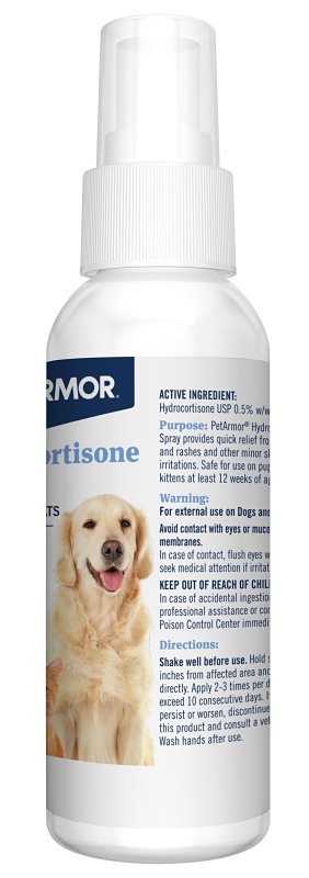 If your pet has an itch, it can make both you and your pet miserable. Give your pet quick relief with PetArmor® hydrocortisone spray for dogs and cats. It provides relief from itching, rashes and other minor ski irritations. Confidently provide relief for your furry family member with PetArmor®.Item Specifications