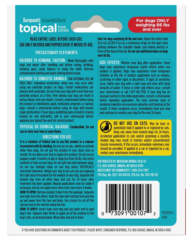 Your pets are family and PetArmor® helps you confidently care for your dog, especially when it comes to flea and tick control. PetArmor® Plus conveniently provides quality protection without the expense of a vet visit. PetArmor® Plus Flea & Tick Topical is a waterproof, fast-acting, long-lasting formula that kills adult fleas and ticks plus stops the flea cycle dead in its tracks. Get nose-to-tail 30 days protection with each dose at an affordable price. Protect your pet for less.Item Specifications