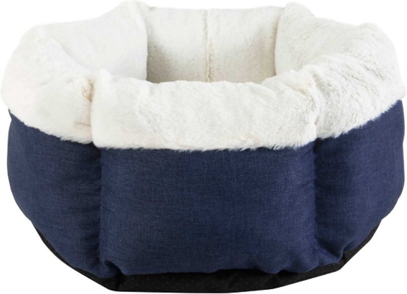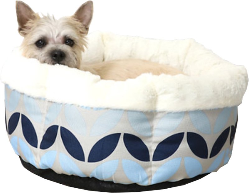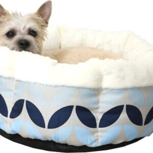 Petmate Pet Bed, Round Shape, Soft Plush Cover, Filling Material: Poly, Blue Denim, Petal Print Pattern, 18 in Length, 18 in Width, Resists: SkidItem Specifications