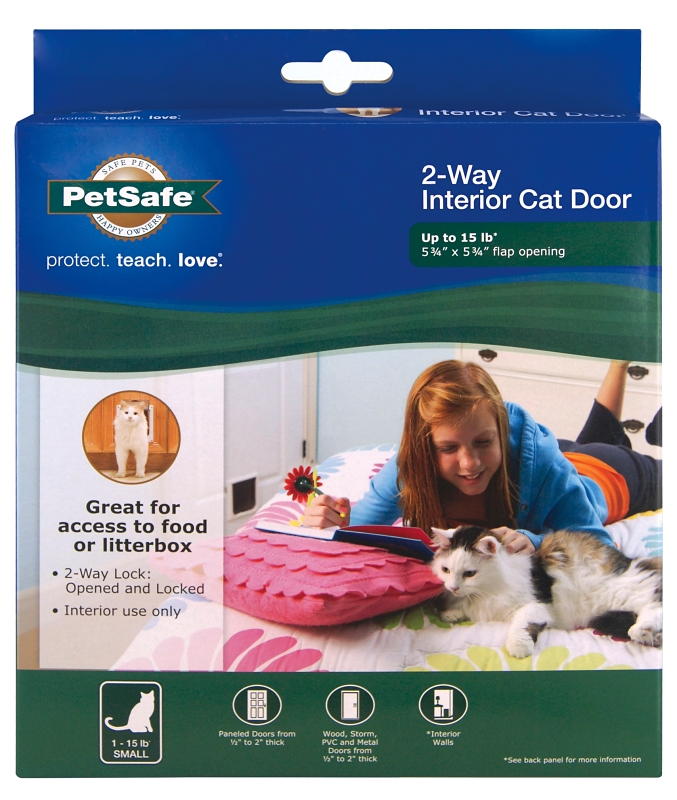 Give your cat access to her litter box without giving her litter box access to your home. This durable cat flap fits any interior door that's 1 to 2 in THK. Your cat can come and go from the room where her litter box is housed even when the door is closed. A sliding lock gives you the option to bar access whenever you choose.Item Specifications