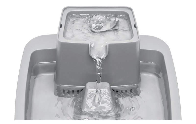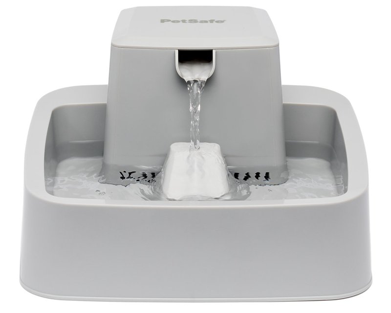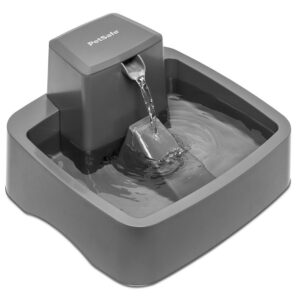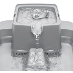 With the 1 Gallon Pet Fountain, your cat or dog can drink from the free-falling stream or the bowl, giving them plenty of sipping options. You can easily adjust the flow of the free-falling water stream, too, with the turn of a knob. Weâve designed this fountain with your catâs whiskers in mind. Cat whiskers are sensitive, so this fountain has a wide bowl to keep her whiskers from brushing the sides while drinking. The open-bowl design of this fountain also means that if your power ever goes out, your pet will still have access to water. Not only does this water fountain for cats and dogs work hard to give them flowing water, but it also helps keep the water clean. A carbon filter and foam filter work together to remove bad tastes, pet hair and odors from your petâs water. The fountain pump constantly circulates water to help prevent bacteria growth.Item Specifications
