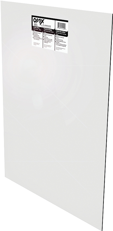 Crystal clear, impact and weather-resistant, Optix® is a continuously processed, high-quality acrylic sheet. High molecular weight makes Optix® ideal for almost any type of fabrication or glazing, while special UV stabilization protects the sheet from yellowing. Backed by a 10 year limited warranty, Optix® is available in a wide range of thicknesses and sizes.Item Specifications