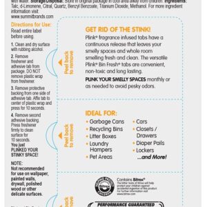 Plink Bin Fresh easily neutralizes foul odors and delivers lasting freshness in garbage bins and other tough areas where odor lingers. The innovative fragrance technology slowly diffuses to neutralize annoying odors, leaving garbage bins and the whole room smelling fresh and clean. The versatile Plink gel pack is convenient and ideal for many applications throughout the home. PLINK YOUR BINS monthly or as needed to avoid pesky odors.Item Specifications