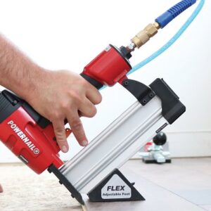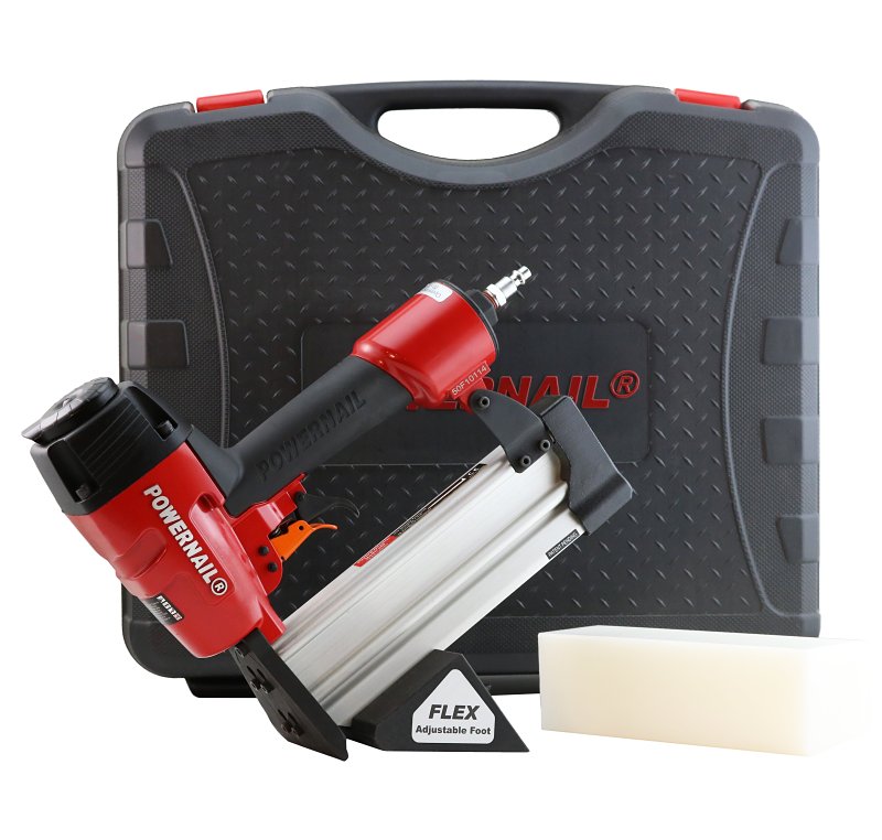 The Model 50F, Trigger-Pull cleat nailer is the most advanced 18 ga Powernailer in its category. This nailer was designed with a variety of innovative features to work faster, longer and harder than the competition. The model 50F features trigger-pulled actuation, a one-piece adjustable Flex Foot and a surprisingly compact size. When it comes to fastening today's top brands of engineered and hardwood flooring, this Powernailer is in a league of its own.