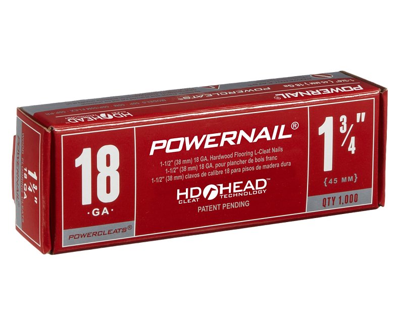 18 ga Powercleats are designed for the hardwood flooring industry and are FHA and VA approved. Powercleats nails are great quality nails designed to ensure trouble-free nailer operation and optimum construction results. Powercleats nails are made from high-quality steel so they do not bend while being driven into hard flooring materials. They are made with a well-formed set of barbs along each nail, providing the ultimate holding power. The design aids in driving them into hard flooring materials, which helps to eliminate split tongues in floorboards.Item Specifications