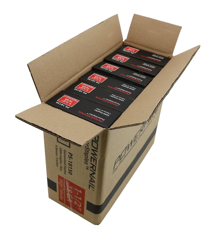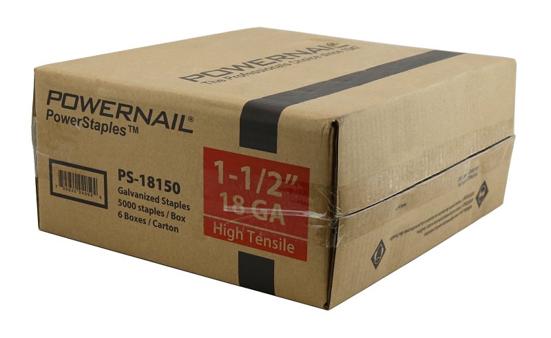 Home > Fasteners > Nails Tacks Brads > Collated Fasteners > Staples Narrow Crown > Powernail PowerStaples PS18150 Fine Wire Staple, 1/4 in W Crown, 1-1/2 in L Leg, 18 ga, Carbon Steel