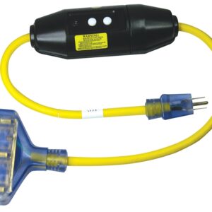 The outlet adapter has a 3-outlet triple-tap that powers 3 tools from the same adapter. The indicator light is oil, water resistant, and flame retardant. The GFCI prevents dangerous shocks and has built-in test & reset buttons. It's flexible to -58 degrees F.