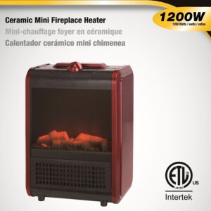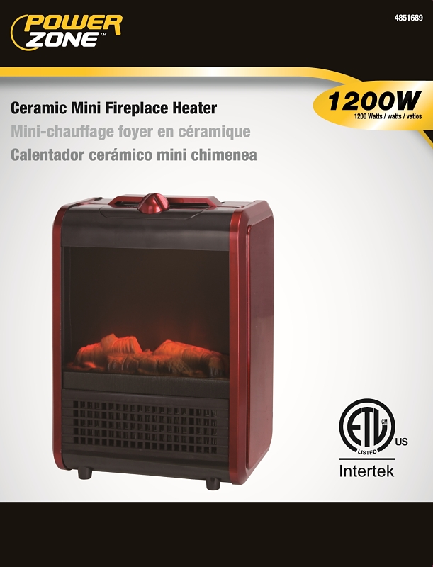 Features 600/1200W heat settings plus flame only. Energy efficient PTC technology. PTC ceramic heater with flame effect. LED flame effect creates the mood and look of a wood burning fireplace. Automatic overheat protection system & safety tip-over switch. Easy-to-use rotary dial control. 2-prong polarized plug. ETL and cETLus.Item Specifications