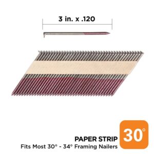 ProFIT Collated Nail, Collation Type: Paper Strip, Collation Angle: 30 deg, Head Type: Round, Shank Type: Ring, 0.12 in Dia, 3 in L, Stainless Steel, Hot-Dipped Galvanized, Suitable for: Framing NailerItem Specifications
