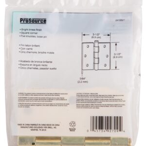 ProSource 20338BBX Square Corner Door Hinge, Steel, Polished Brass, Loose Pin, 180 deg Range of Motion