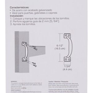 ProSource 20912MGB-PS Door Pull, 1-3/4 in W, 6-1/2 in D, 1-1/2 in H, Steel, Galvanized