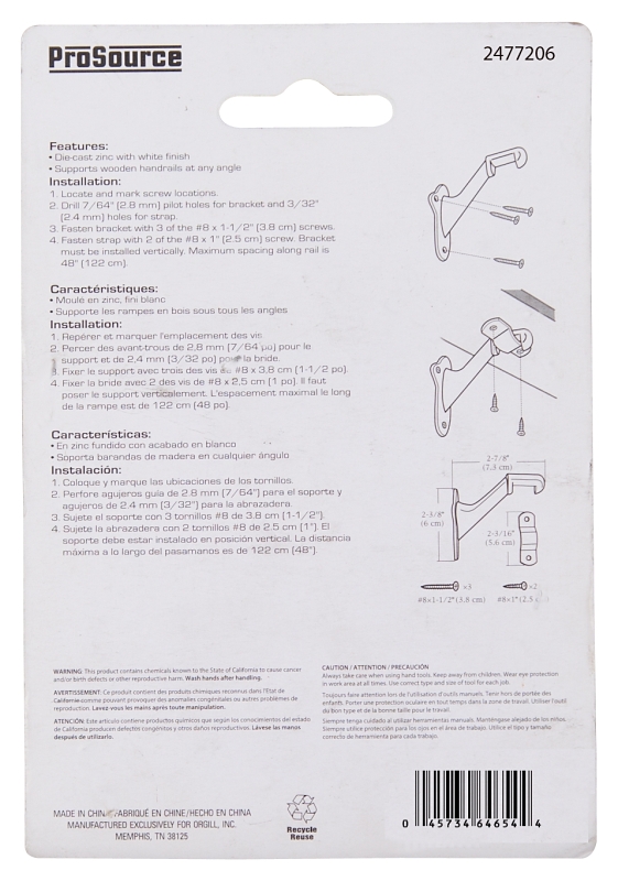 The handrail brackets are easy to install. They are design to adjust to any stairway angle and are great for indoor or outdoor use. The handrail brackets are durable, sturdy, long-lasting and made from zinc die cast.Item Specifications