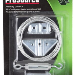 The ProSource anti-sag gate kit eliminates gate sag. Its made of steel and includes two corner braces, two pairs of cable clamps, one hook and eye turnbuckle and one 90 in stranded steel cable and fastener.Item Specifications