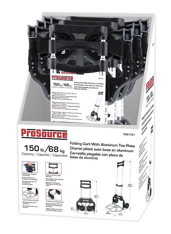 Home > Hand Tools > Safety and Organization > Tool Storage and Organization > Tool Carts > ProSource 85-611-A Cart, 150 lbs, 15-1/8 in L Platform, 11 in W Platform, 2-Wheel, Aluminum